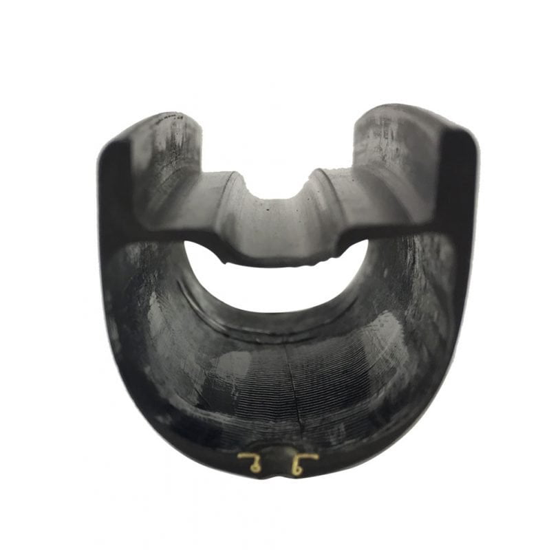 The newest technology we are applying to our rims is smooth molded holes with no drilling. The molded holes result in a rim with no increase in weight over traditional drilled spoke holes, but increased strength by around 60%. In each spoke hole is embedded a thin metal cap which is molded into the structure during manufacturing. The cap helps distribute the load from the spoke nipple over a larger area decreasing the effect of the stress concentration. Additionally as the hole in the carbon fiber structure is molded in, the fibers are continuous and not cut during drilling. With no interrupted fibers in the structure and better load distribution our rims maximize strength and stiffness without adding weight.